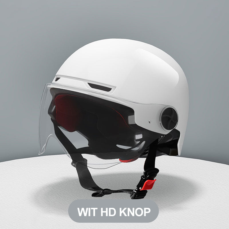 HD & ZONNEBESCHERMING: Uitgerust met een HD-lens of een zonnefilterlens biedt de helm uitzonderlijk zicht en bescherming tegen schittering en schadelijke UV-stralen.
