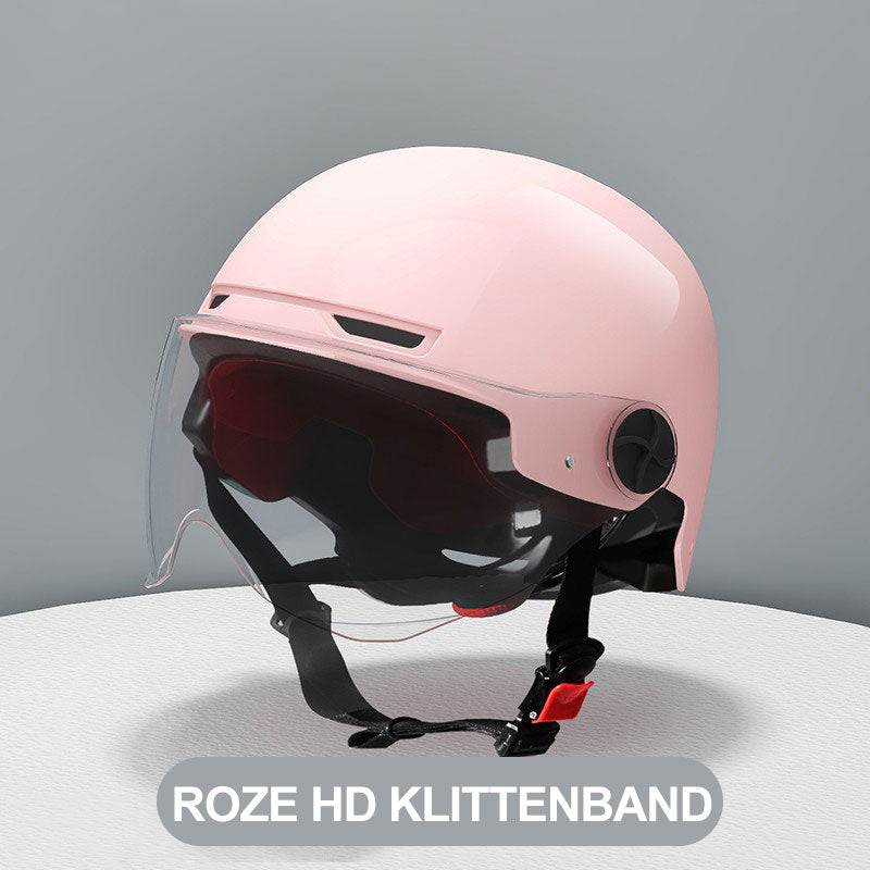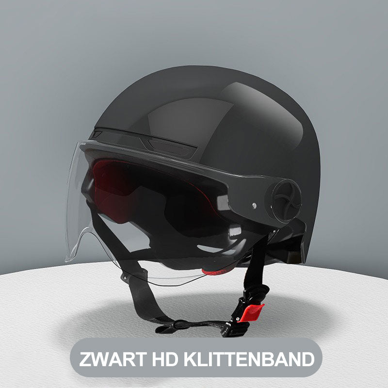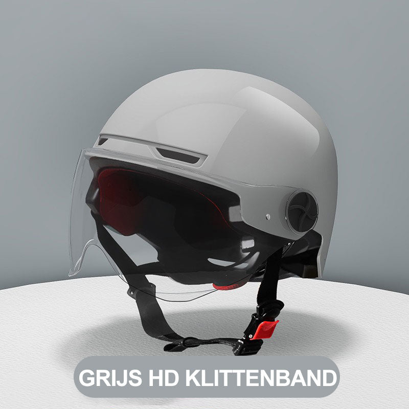 COMFORTABEL & VEILIG: De helm is ontworpen voor comfort, met padding en verstelbare bandjes die zorgen voor een comfortabele en veilige pasvorm tijdens ritten.