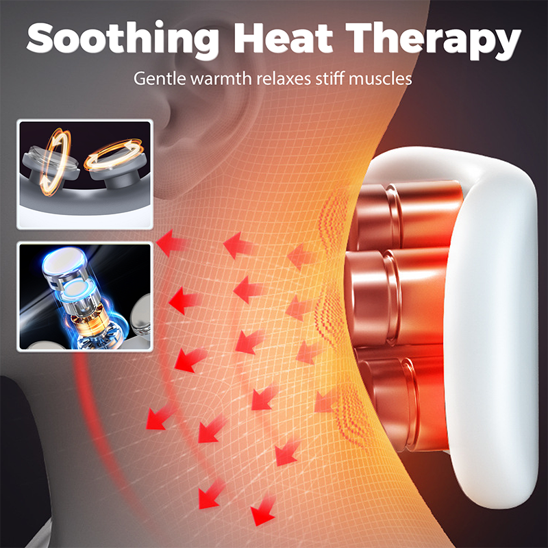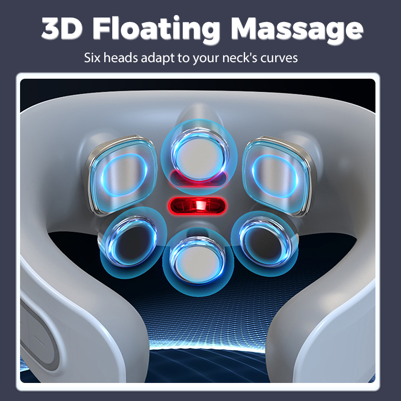 3D FLOATING MASSAGE SYSTEM – Six intelligent massage heads gently glide and pivot, tracing your neck’s natural curves for a truly comfortable experience. With five intensity levels, it mimics professional techniques like kneading and acupressure, melting away tension in stiff muscles and pressure points.