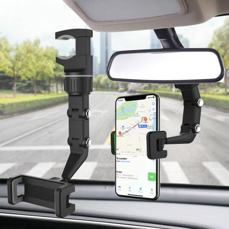 Laat je telefoon je aandacht niet van de weg afleiden! Deze slimme telefoonhouder wordt stevig aan je achteruitkijkspiegel bevestigd en draait 360 graden, zodat je hem als standaard kunt gebruiken of inkomende gesprekken en sms'jes kunt zien zonder van de weg te kijken. Nu kun je beide handen aan het stuur houden en veilig blijven terwijl je praat of navigeert.