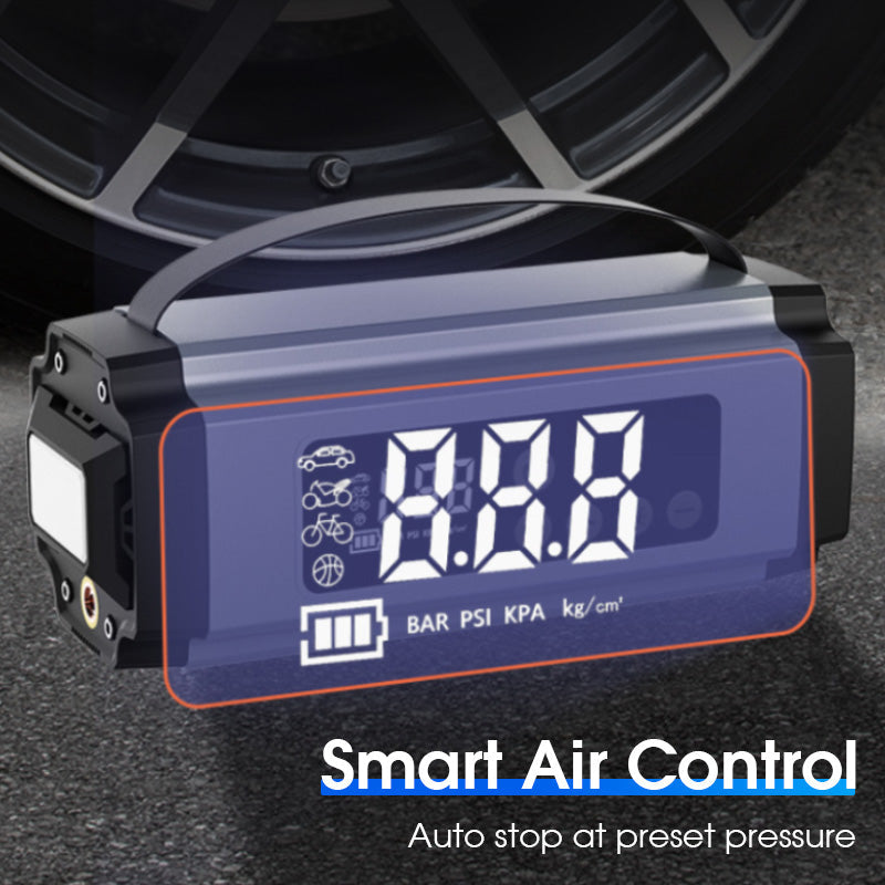 SLIMME LUCHTCONTROLE: Met vooraf ingestelde bandenspanning en een automatische stopfunctie om overmatige spanning te voorkomen. Ingebouwde, zeer nauwkeurige bandenspanningscontrole zorgt voor veilig en nauwkeurig oppompen van auto's, motoren, fietsen en andere opblaasbare artikelen.