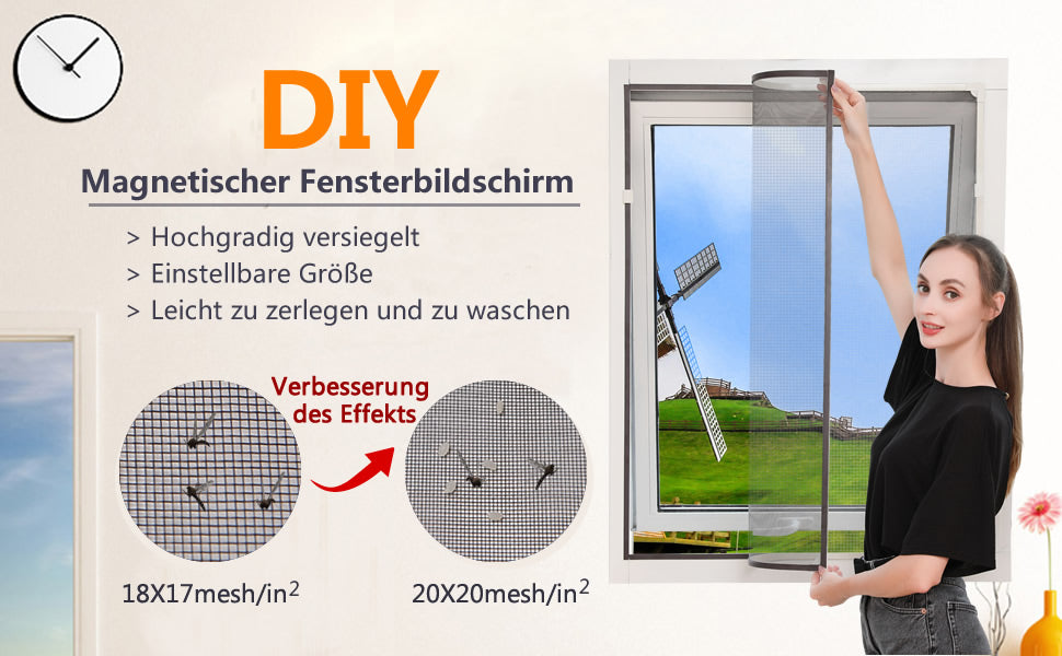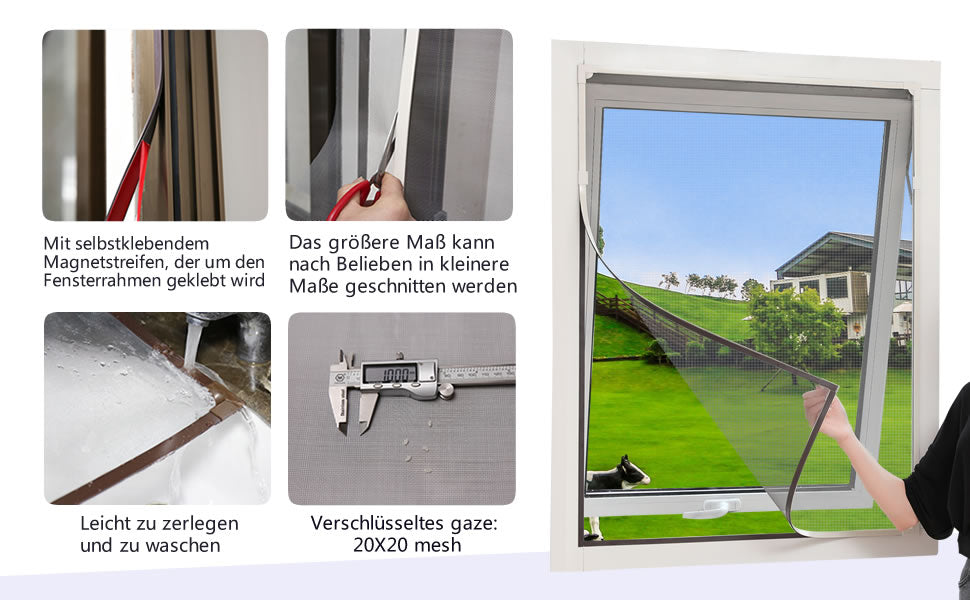 Fiberglass mesh is fine and breathable, easy to cut. The magnetic screen window can be installed in less than 15 minutes.