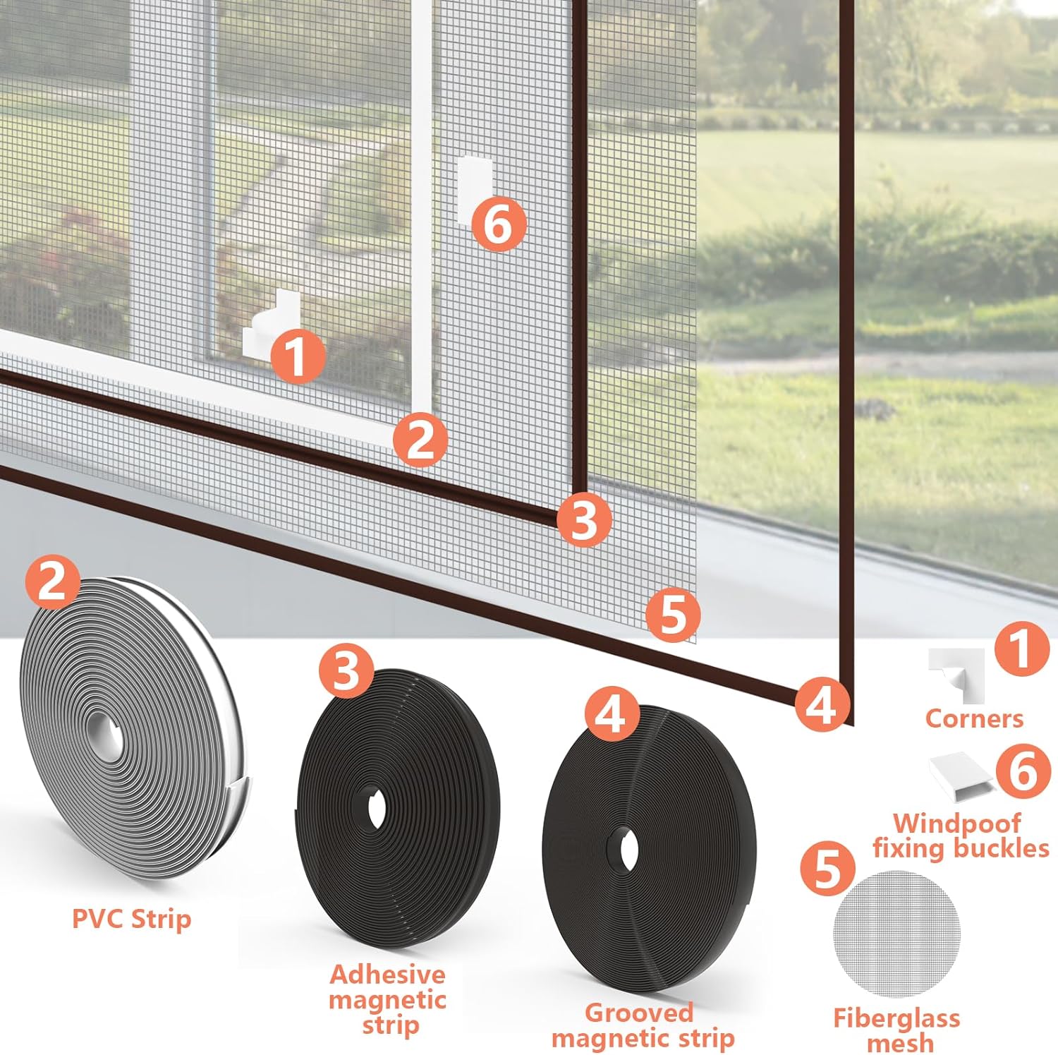 - 🏡【Fine Fiberglass Mesh】The window screen mesh is made of new high-quality fiberglass, which is excellent in flame retardant, fireproof, chemical resistance and tear resistance; Strongly bonded magnetic strip (magnetic force up to 720GS), upgraded 4 magnetic lines, doubling the magnetic suction force.