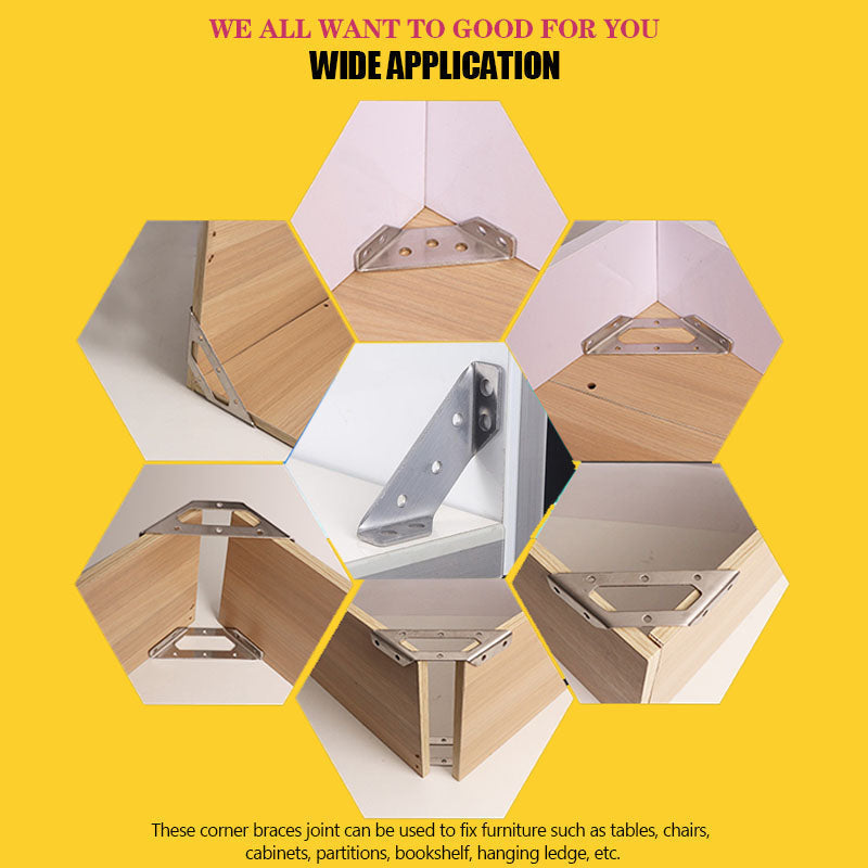 - 【Materiaal】De trapeziumvormige hoekbeugel is gemaakt van premium roestvrij staal om stevigheid en duurzaamheid te garanderen.