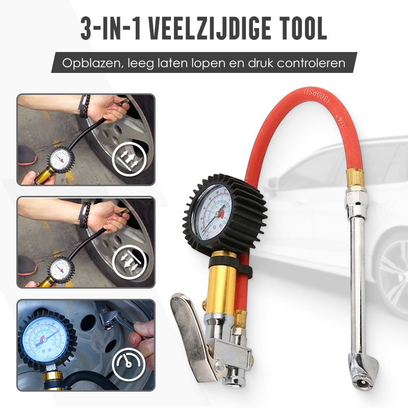 3-IN-1 MULTIFUNCTIONEEL ONTWERP : Combineer naadloze banden oppompen, leeg laten lopen en druk controleren in één compact gereedschap. Deze handige alles-in-één functionaliteit stroomlijnt uw workflow, waardoor u kostbare tijd en moeite verdient tijdens routinevoertuigonderhoud.