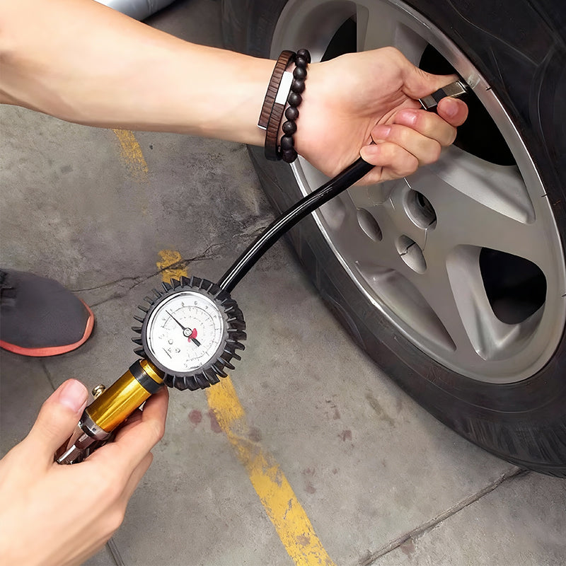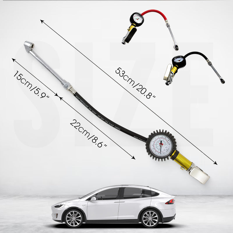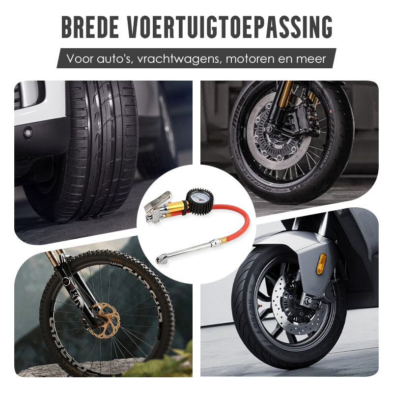 VEELZIJDIG & HANDIG OPBLAASGEREEDSCHAP : Perfect voor een ras scala aan voertuigen, waaronder auto's, motoren, vrachtwagens, campers en fietsen. Of het nu thuis is, in de garage of onderweg, deze bandenspanningsmeter met opblaasfunctie is een efficiënt en effectief hulpmiddel voor al uw behoeften op het gebied van bandenspanning.